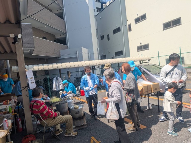 午前11時から豚汁の配給と焼きそば等の販売を開始しましたが、12時前にはほぼ売り切れとなりました。12時以降に来られて配給、販売出来なかった方には申し訳ありませんでした。