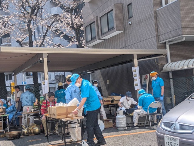 2026年3月29(日)に初海整形外科駐車場にて防災訓練の一環として炊き出し訓練とお花見を実施致しました。当日は晴天に恵まれ、桜もほぼ満開という状況で開催することが出来ました。今年は予め町内をアナウンスカーで事前に開催の広報をさせて頂き、たくさんの方に参加を頂きました。